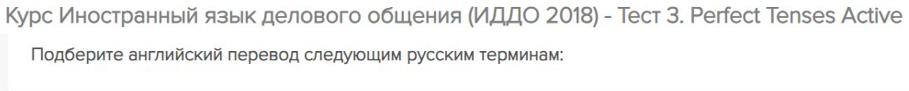 Для студентов ИДДО НИУ «МЭИ» по предмету Английский языкОтветы на тест 3 - Perfect Tenses Active (96%)Ответы на тест 3 - Perfect Tenses Active (96%)