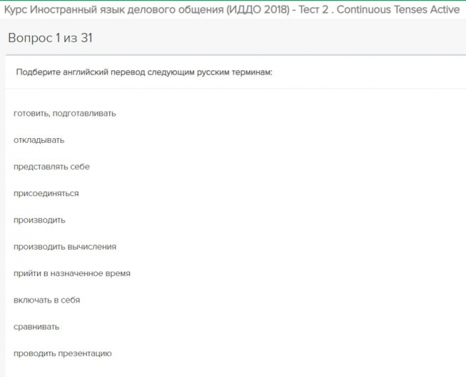 Ответы к контрольной работе 2: Continuous Tenses Active