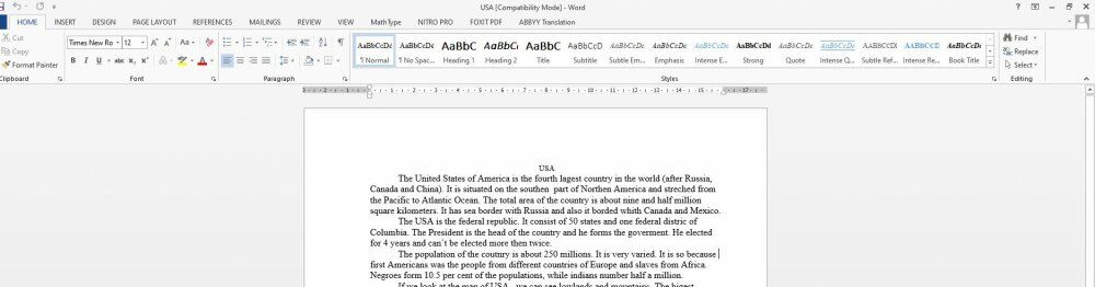 The United States of America is the fourth lagest country in the world (after Russia, Canada and China). It is situated on the southen part of Northen America and streched from the Pacific to Atlantic Ocean. The total area of the country is about nine and half million square kilometers. It has sea border with Russia and also it borded whith Canada and Mexico.