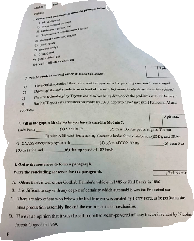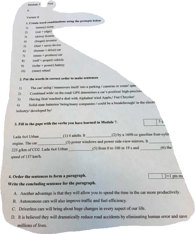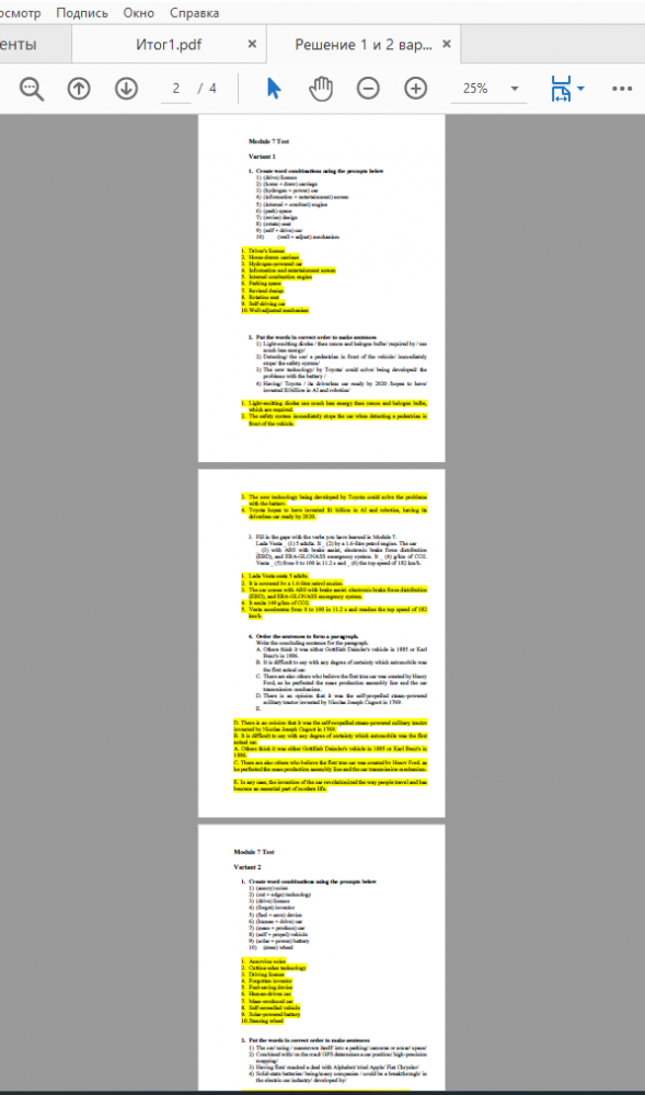 Ответы к контрольной работе 7: Modul 7 Test "Automobiles" вариант 1, 2
