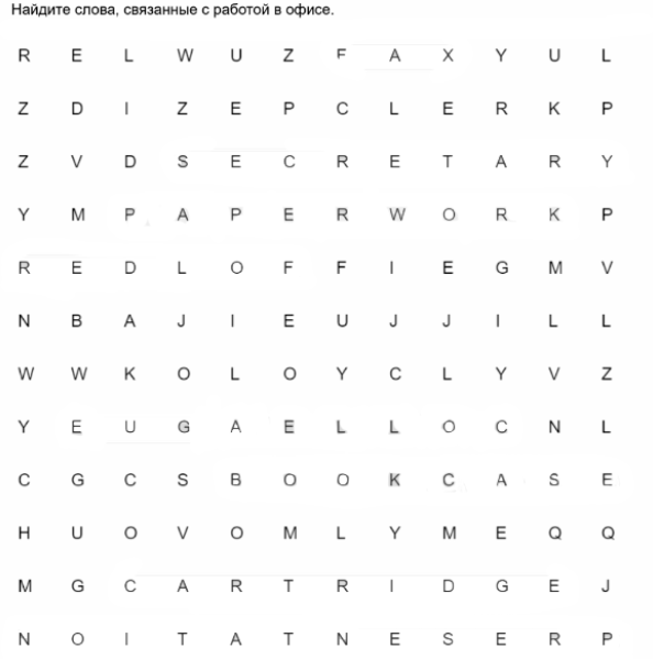Найдите слова, связанные с работой в офисe. Анлгийский язык ДОУА Практическое занятие 2. Задание 8 НСПК.