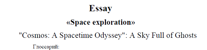 Сочинение: Эссе - "Cosmos: a spacetime odyssey": A Sky Full of Ghosts