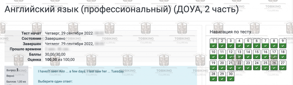 Выполню тест "Английский язык (профессиональный) (ДОУА, 2 часть)" для НСПК на максимальный балл в короткие сроки!
