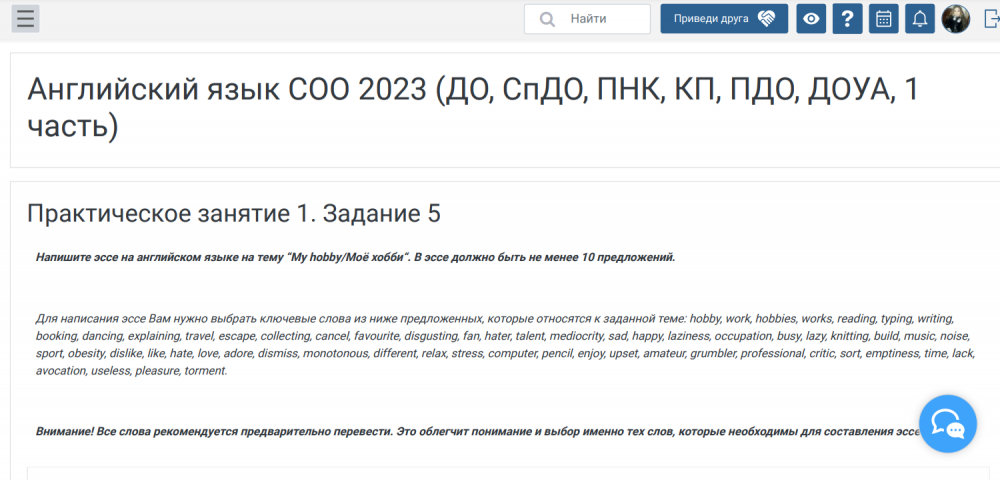 Услуга: Английский язык СОО 2023 Практическое занятие 1. Задание 5