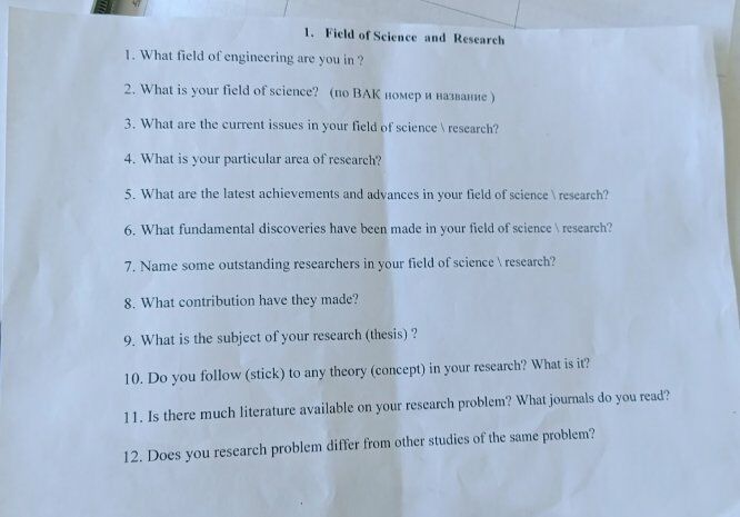 На основе предлагаемых вопросов необходимо написать небольшой рассказ об области своей специализации. Объем работы - примерно 1 лист формата А4 (шрифт Times New Roman, 14).