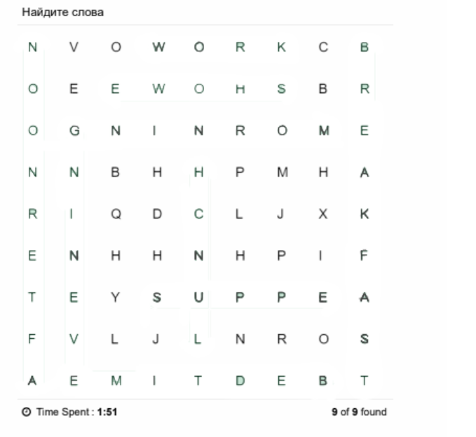 Найдите слова, связанные с распорядком дня в таблице ниже.