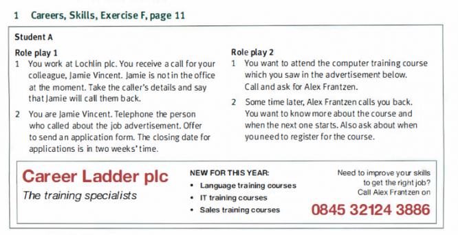 Главная » Учебные материалы » Английский язык » Решения задач » МГТУ им. Н.Э.Баумана » 1 семестр » Role pay диалоги Pre-Intermediate Market leader Careers, Skills, Ex. F, p. 11