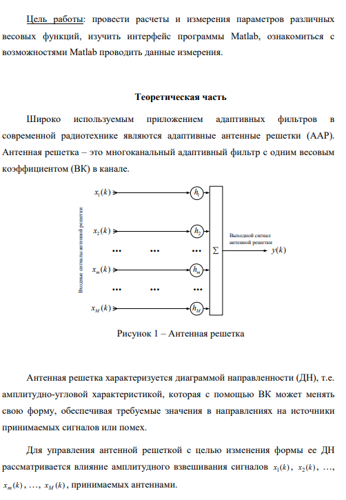 Лабораторная работа: Лабораторная работа №6 (Решение задачи пространственной фильтрации сигналов с помощью антенных решеток на языке MATLAB)