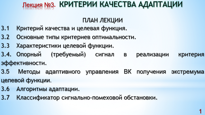 Для студентов МГТУ им. Н.Э.Баумана по предмету Антенны с адаптацией к активным помехамЛекция №3. Критерии качества адаптацииЛекция №3. Критерии качества адаптации 2023-06-27СтудИзба