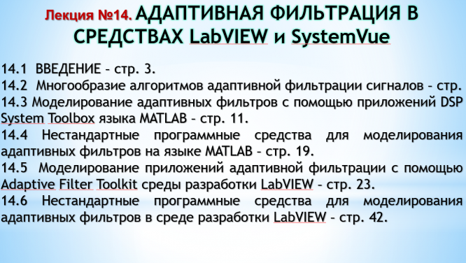 Презентация: Лекция №14. Адаптивная фильтрация в средствах LabView и SystemVue