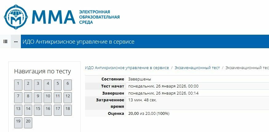 Сборник ответов к экзаменационному тесту Антикризисное управление в сервисе ММА.