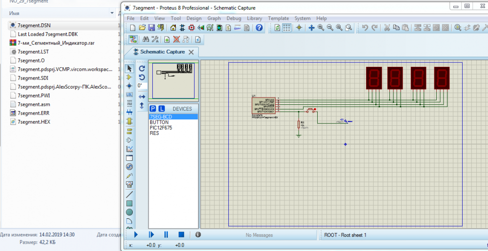 "7-ми Сегментный Индикатор" в программе Proteus.