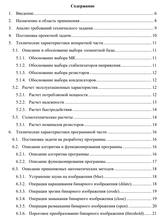 Характеристики курсовой работы