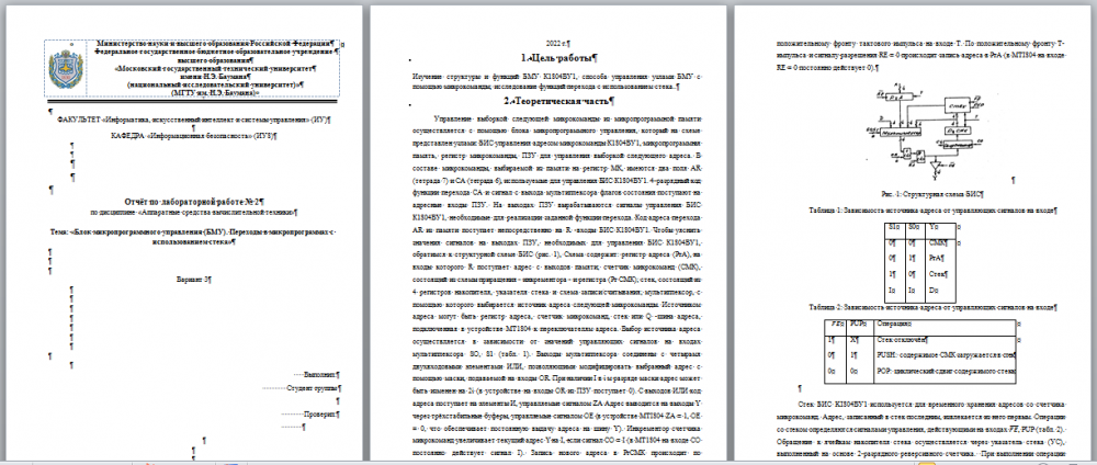 Для студентов МГТУ им. Н.Э.Баумана по предмету Аппаратные средства вычислительной техникиБлок микропрограммного управления (БМУ). Переходы в микропрограммах с использованием стекаБлок микропрограммного управления (БМУ). Переходы в микропрограммах с использованием стека