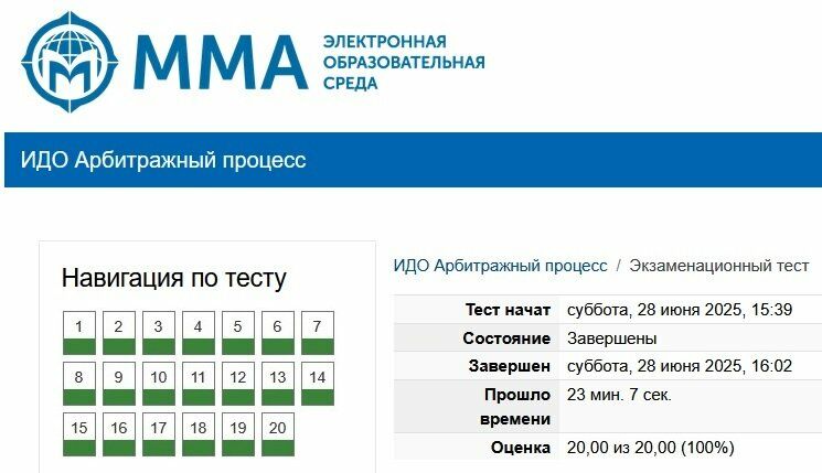 Сборник ответов к экзаменационному тесту Арбитражный процесс ММА.