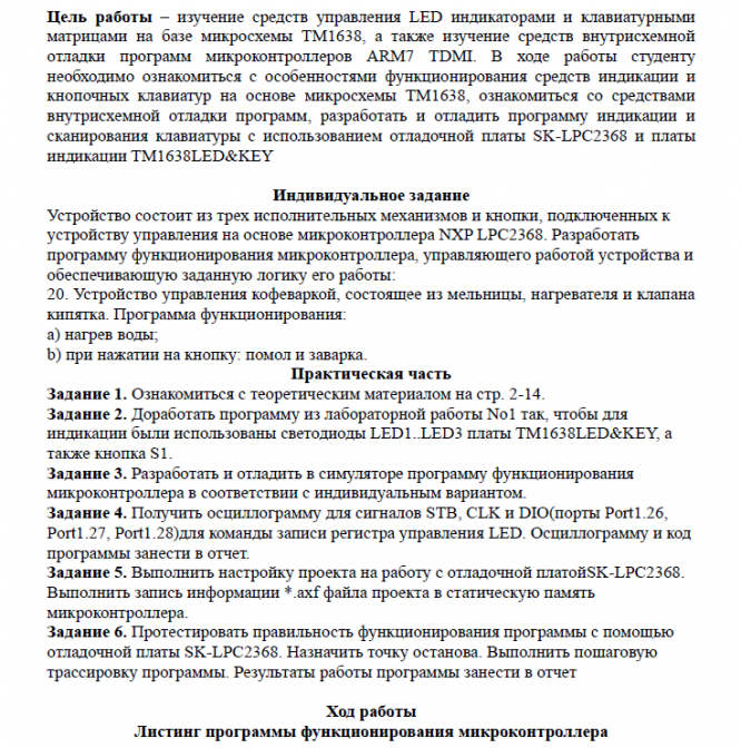 Главная » Учебные материалы » Архитектура ЭВМ » Лабораторные работы » МГТУ им. Н.Э.Баумана » 5 семестр » Отчет по лабораторной работе №2 "Изучение средств ввода и вывода алфавитно-цифровой информации и индикации с использованием микроконтроллеров ARM7"