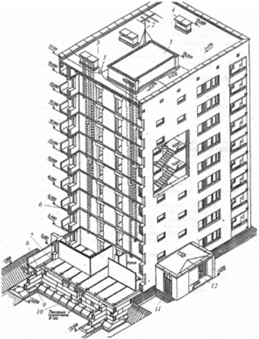 Что обозначено цифрой «3» на рисунке «Пространственный разрез по конструкциям многоквартирного жилого дома»?