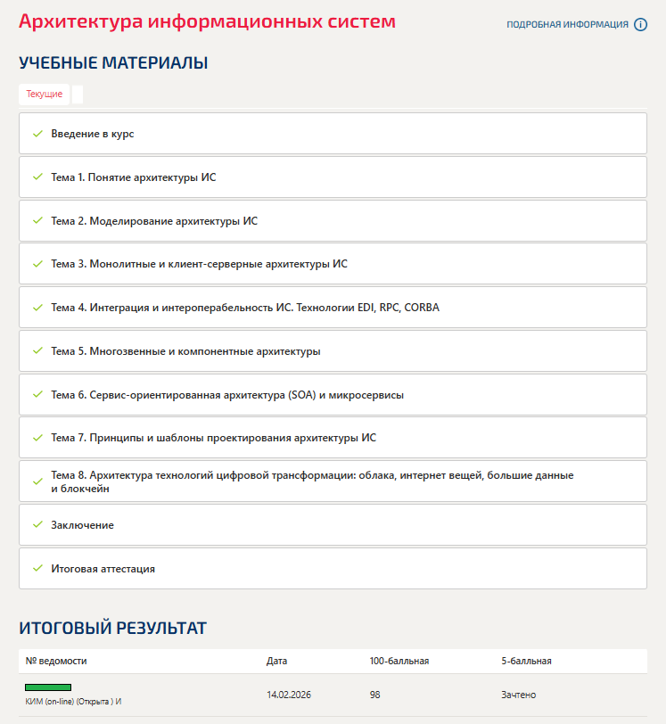 💯 Архитектура информационных систем Синергия Ответы на тесты 1-8, итоговый тест, компетентностный