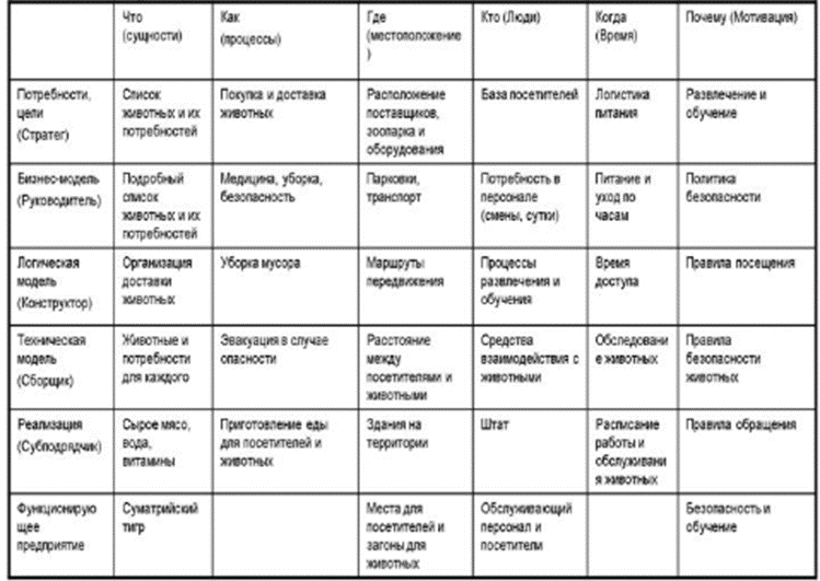 Для описания зоопарка была использована модель Захмана, приведенная на рисунке. Однако она неполная.