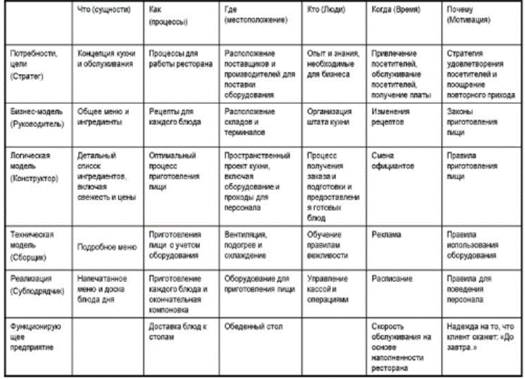 Для описания ресторана была использована модель Захмана, приведенная на рисунке. Однако она неполная.