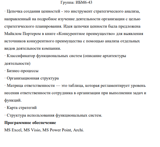 Домашнее задание по дисциплине "Архитектура предприятия". Четвертый семестр. Преподаватель Самолдин А.Н.