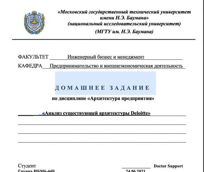 Анализ существующей архитектуры Deloitte (АО Делойт) - консалтинговая компания. В документе описаны все бизнес-процессы, описание и анализ компании. ДЗ было проверено на 19/20 баллов.