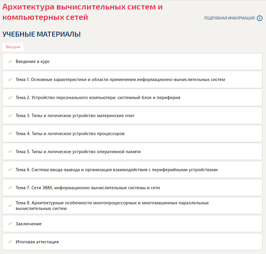 Ответы к экзамену Темы 1-8: Архитектура вычислительных систем и компьютерных сетей вариант Итоговый тест