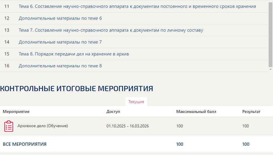 Ответы к экзамену Темы 1-8: Архивное дело вариант Итоговый тест