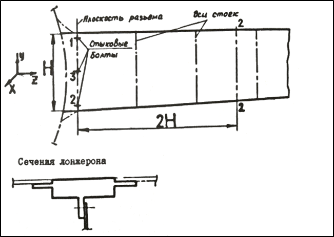 2. Высоту теоритического контура лонжерона в сечении 2-2 условно принять равной Н.