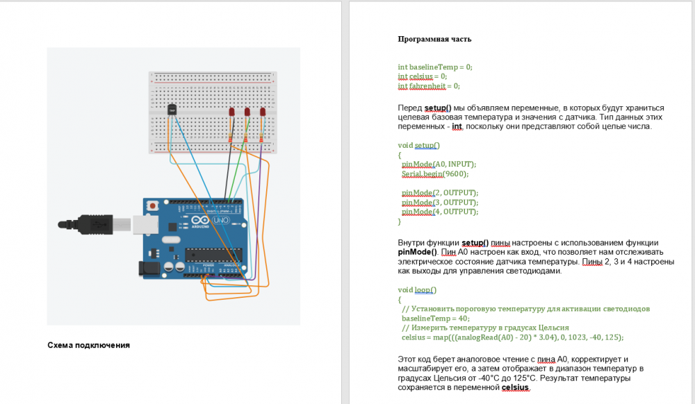 - Temperature sensor [TMP36], датчик температуры, считывает температуру и посылает ее значение на главную плату.