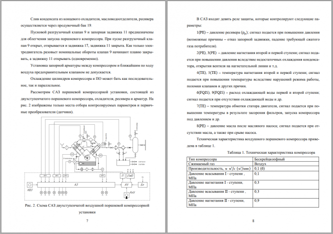 6. Построение систем защиты поршневой двухступенчатой компрессорной установки