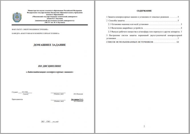 • ДЗ выполнено в PDF и схема компрессорной установки в КОМПАС
