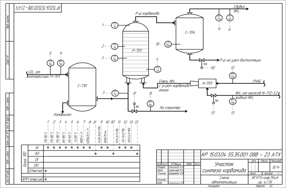 Для студентов ИГХТУ по предмету Автоматизация технологических процессовАвтоматизированная система управления участком синтеза карбамидаАвтоматизированная система управления участком синтеза карбамида