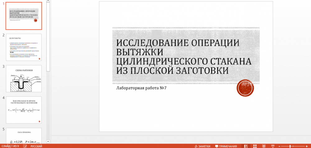Лабораторная работа: Все для лабораторной работы [Исследование операции вытяжки цилиндрического стакана из плоской заготовки]