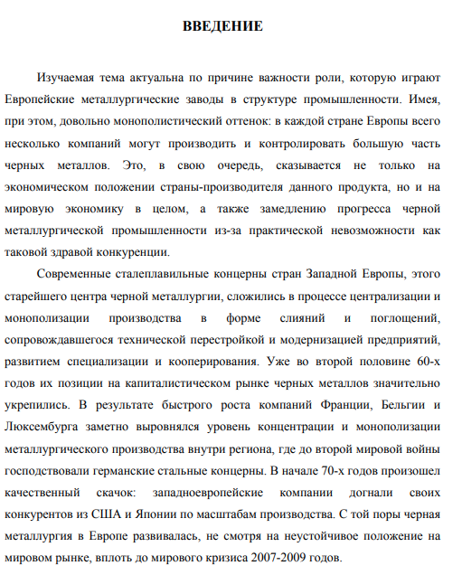Изучаемая тема актуальна по причине важности роли, которую играют Европейские металлургические заводы в структуре промышленности. Имея, при этом, довольно монополистический оттенок: в каждой стране Европы всего несколько компаний могут производить и контролировать большую часть черных металлов. Это, в свою очередь, сказывается не только на экономическом положении страны-производителя данного продукта, но и на мировую экономику в целом, а также замедлению прогресса черной металлургической промышленности из-за практической невозможности как таковой здравой конкуренции.