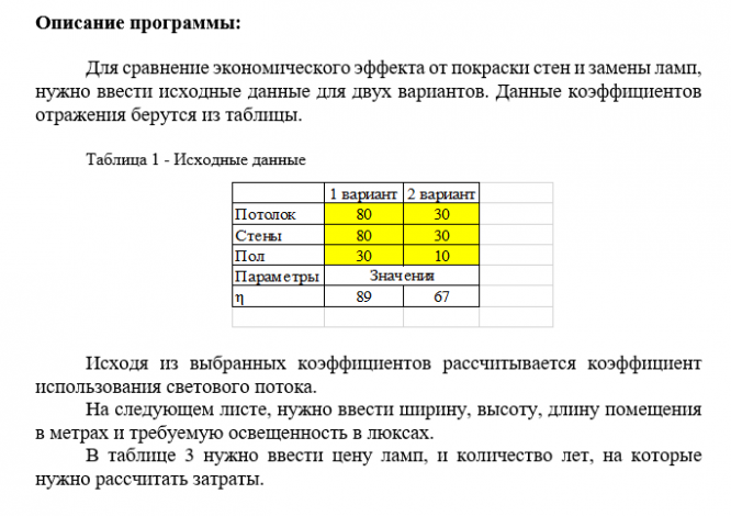 Цель работы: определить на основе метода коэффициента использования, как и в какой степени влияет окраска помещения (гальванического цеха) на потребляемую активную мощность искусственными источниками света. Сравнить экономический эффект от замены ламп.