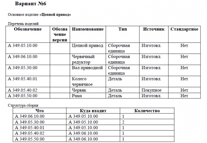 2. Отчет полного состава изделия с характеристиками