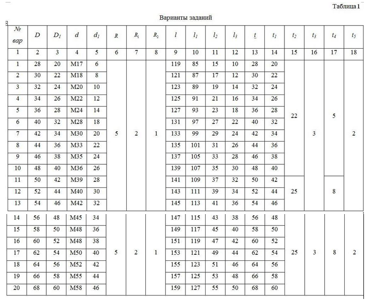 Варианты заданий представлены на рис. 1 и в таблице 1.
