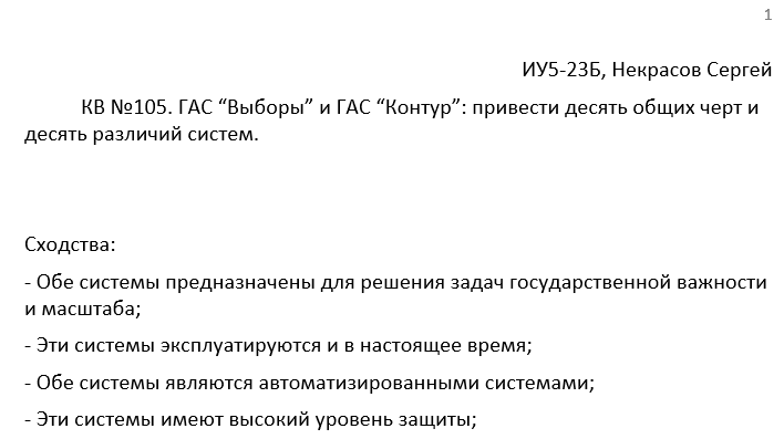 ГАС “Выборы” и ГАС “Контур”: привести десять общих черт и десять различий систем.