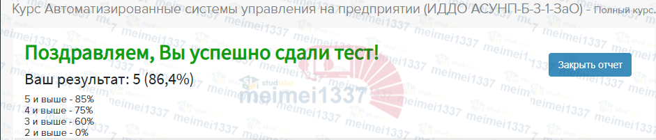 Курс Автоматизированные системы управления на предприятии - база ответов к тестам: