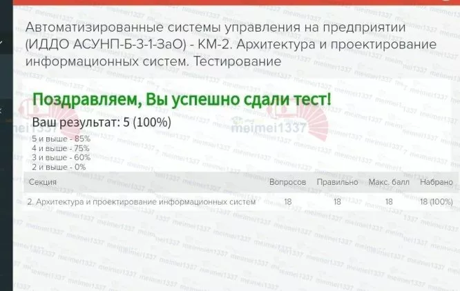 💼 База ответов к тесту КМ-2. Архитектура и проектирование информационных систем (Курс Автоматизированные системы управления на предприятии) 📊