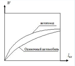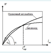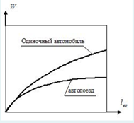 При сравнении производительности одиночного автомобиля и автопоезда на его основе установлено, что использовать автопоезд выгоднее для любой реальной длины ездки, но при очень большой длине ездки производительности этих транспортных средств сравниваются (см. график). Для каких условий это справедливо?