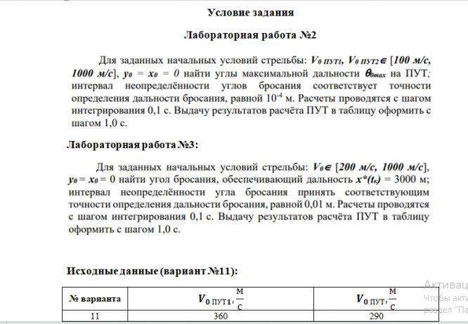 Лабораторная работа 2, 3: "Нахождение угла максимальной дальности стрельбы на пассивном участке траектории полета ЛА" вариант 11