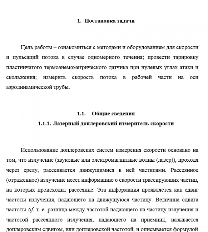 Цель работы – ознакомиться с методами и оборудованием для скорости и пульсаций потока в случае одномерного течения; провести тарировку пластинчатого термоанемометрического датчика при нулевых углах атаки и скольжения; измерить скорость потока в рабочей части на оси аэродинамической трубы.