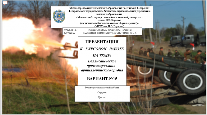 Курсовая работа: Баллистическое проектирование артиллерийского орудия. вариант 15