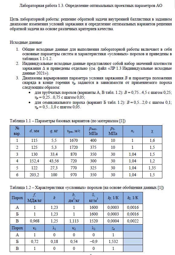Для студентов МГТУ им. Н.Э.Баумана по предмету Баллистика ствольного оружияОпределение оптимальных проектных параметров АО.Определение оптимальных проектных параметров АО.