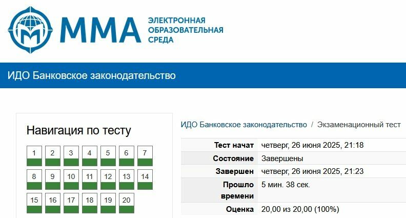 Сборник ответов к экзаменационному тесту Банковское законодательство ММА.