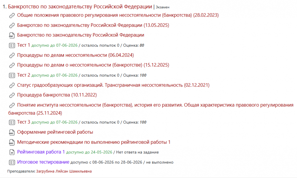 Ответы к экзамену Тесты 1-3, Итоговый: Банкротство по законодательству Российской Федерации (Тесты 1-3)
