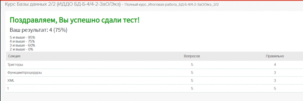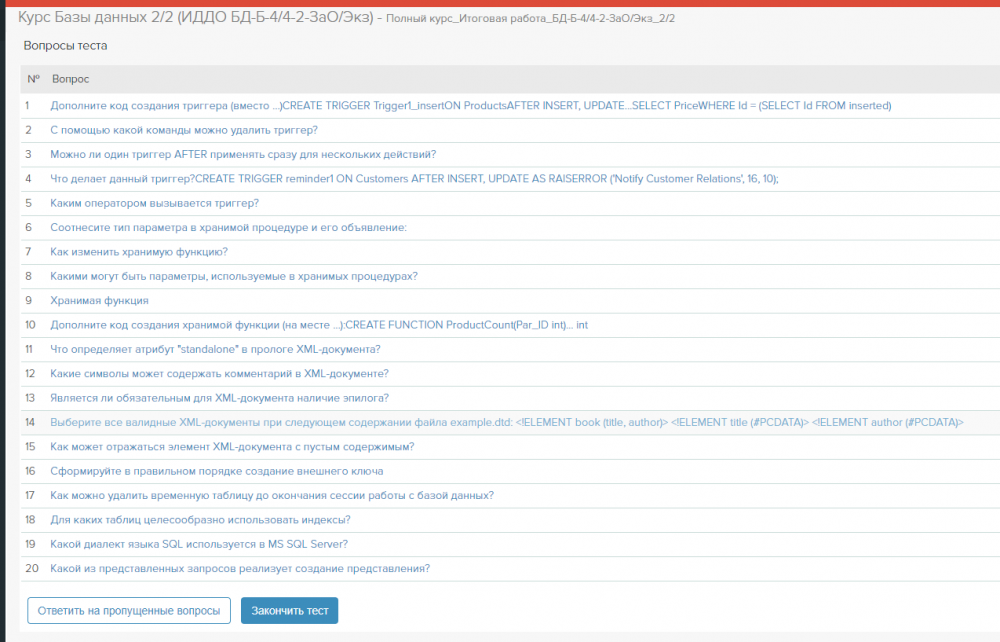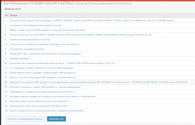 Ответы к экзамену Итоговый тест: Базы данных 2/2