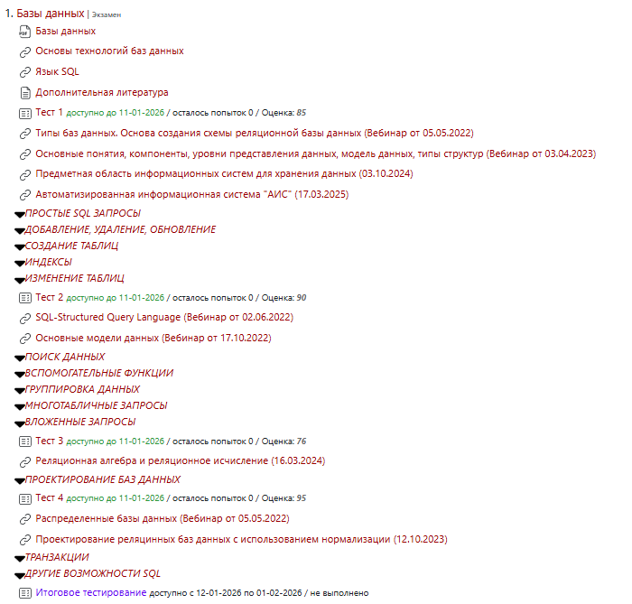 Базы данных Витте Ответы на тесты 1-4